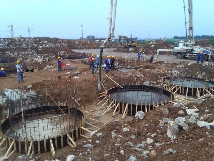 7月7日下午四時左右,第一批基坑清理完畢,經過業主、地堪公司、監理公司驗收,認為達到了澆注條件,分公司項目部立即協商商混公司,連夜澆注。在晚上八時,注入第一車混凝土,至8日凌晨四時,完成第一批澆注,成為該項目開工的標志。