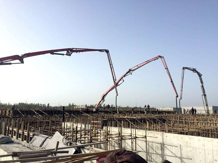 9月8日,根據當地商砼習性和前兩次AO池筏板基礎和A區壁板澆筑的經驗,中南分公司喀什博天供排水項目部決定利用難得的陰天進行AOB區池壁商砼澆筑。