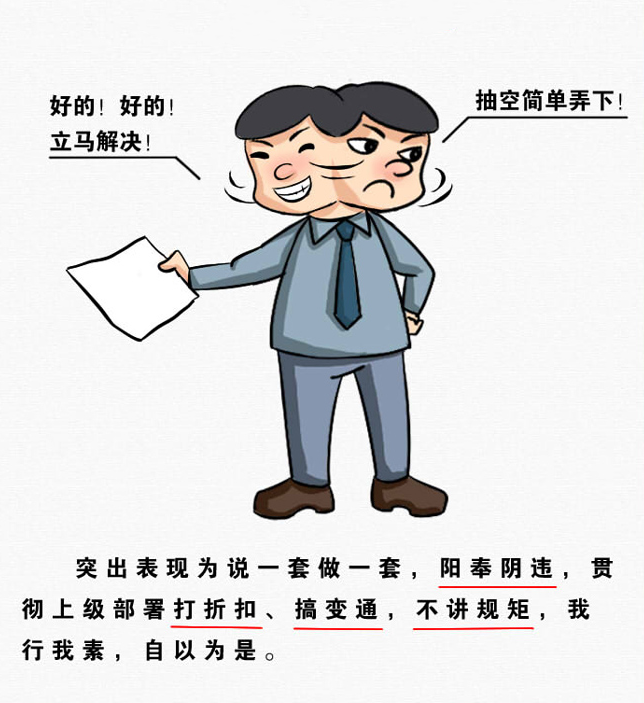 不認(rèn)真貫徹執(zhí)行公司的工作部署,甚至搞“上有政策、下有對(duì)策”,損害公司的全局利益。