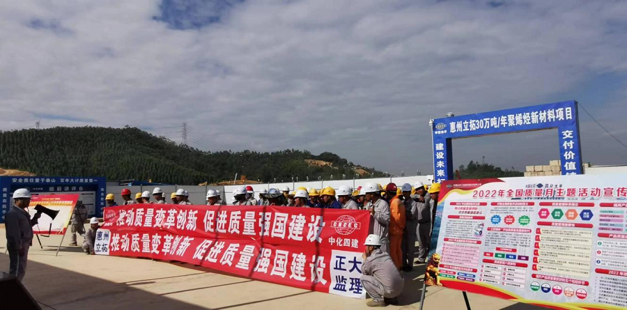 日前,華南公司惠州立拓項(xiàng)目開展以“推動(dòng)質(zhì)量變革創(chuàng)新、促進(jìn)質(zhì)量強(qiáng)國(guó)建設(shè)”為主題的2022年“質(zhì)量月”活動(dòng)啟動(dòng)儀式。