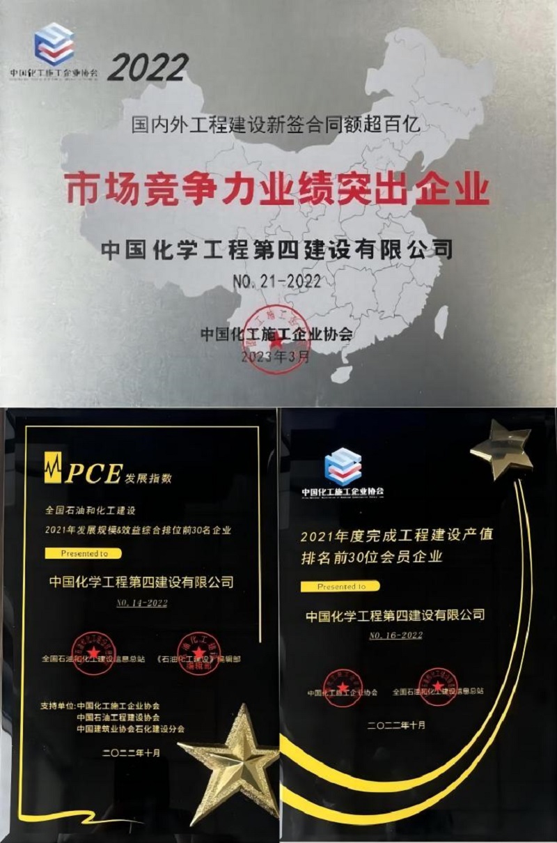 近日,從中國化工施工企業協會2023年年會暨第十屆六次理事會傳來喜訊,公司獲得多項榮譽,被授予“2022年國內外工程建設新簽合同額超百億市場競爭力業績突出企業”“全國石油和化工建設2021年發展規模&效益(PCE發展指數)綜合排名前30名企業”和“2021年度完成工程建設產值排名前30位會員企業”。