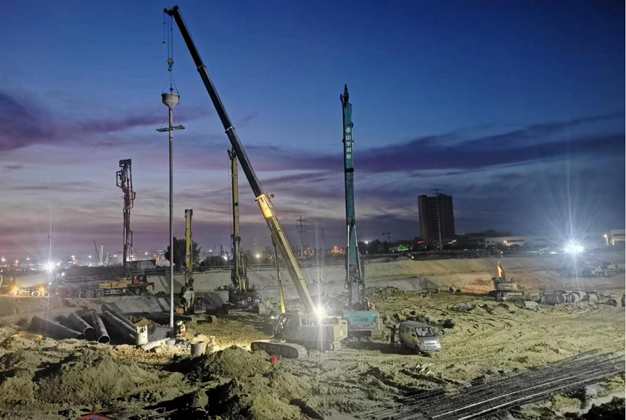 目前,項目A、B、D三個地塊已全面進入大干階段,現場投入鉆機14臺,保證每天完成樁基180根。現已完成樁基1769根,占三個地塊5453根樁基的32%,計劃9月13日前完成三個片區全部樁基施工和基坑支護工作,屆時項目將全面進入基礎施工階段。